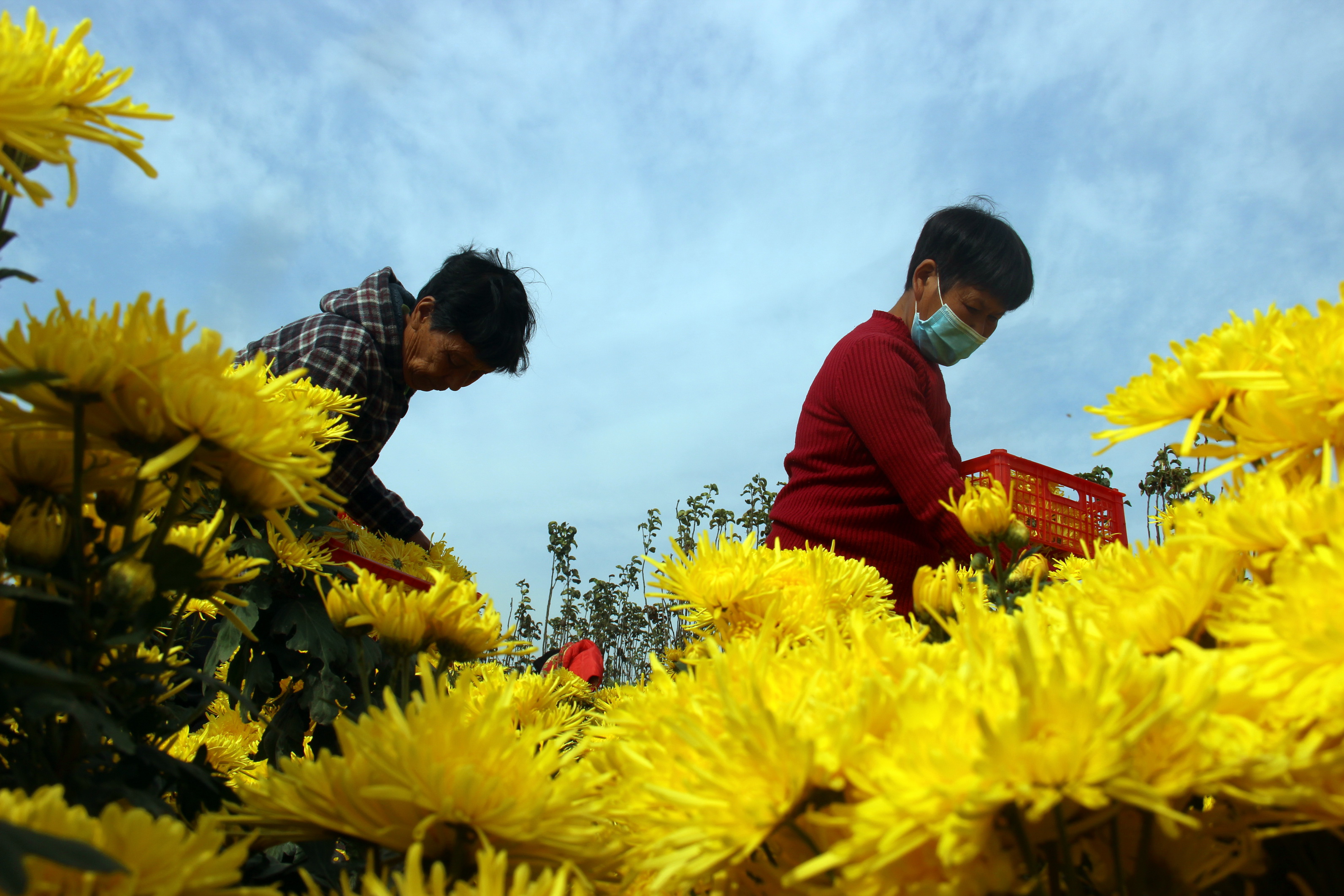 11月3日,商水縣郝崗鎮(zhèn)大路李村貧困戶婦女在李華生的合作社采收金絲黃菊。郝崗鎮(zhèn)政府鼓勵(lì)大路李村負(fù)責(zé)人李華生引進(jìn)金絲黃菊種植帶動(dòng)貧困戶增收致富,目前該村種植面積達(dá)到百畝,畝效益均在6000元以上。記者付永奇通訊員呂耀光攝