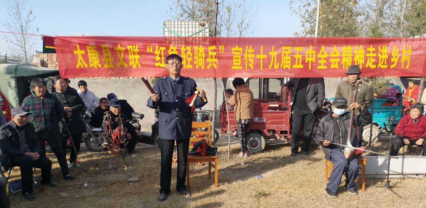 2020年10月26日至29日,黨的十九屆五中全會在北京召開,全會審議通過了《中共中央關于制定國民經(jīng)濟和社會發(fā)展第十四個五年規(guī)劃和二Ο三五年遠景目標的建議》,這是我國奪取全面建設社會主義現(xiàn)代化國家新勝利的綱領性文件。作為宣傳陣地的文藝輕騎兵,太康縣文聯(lián)迅速組織太康縣民間文藝家協(xié)會、太康縣曲藝家協(xié)會、太康縣文藝志愿者協(xié)會的藝術家組建文藝“紅色輕騎兵”在全縣開展黨的十九屆五中全會精神的宣傳活動。