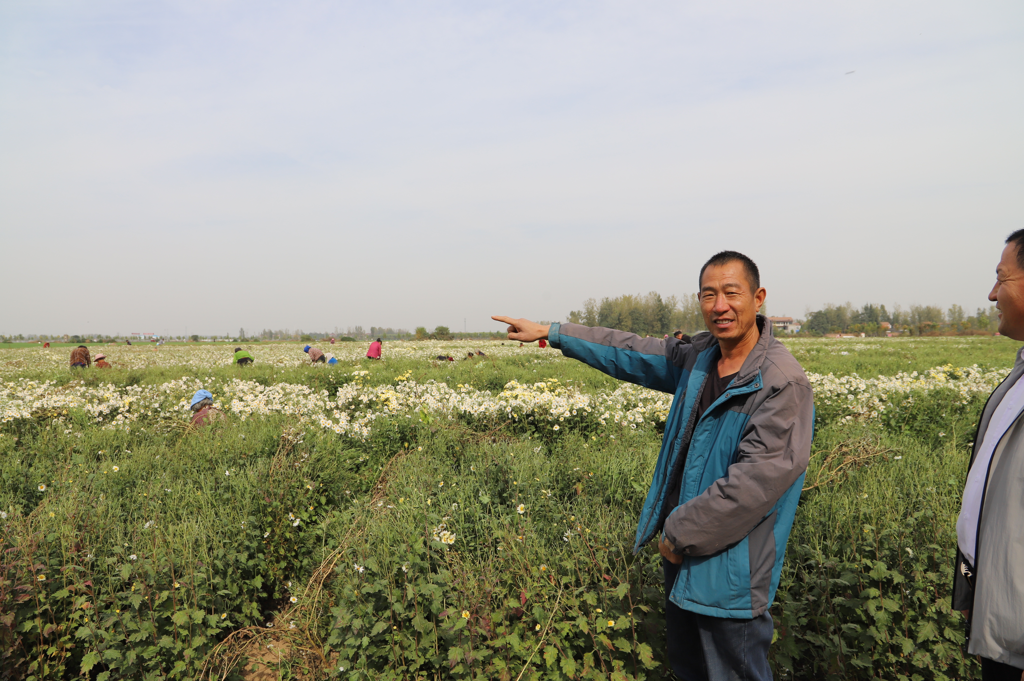 “像這樣含苞待放的胎菊,都被收作為花茶加工銷售;這些怒放的花朵有的作為藥材送往亳州,有的被精選送到王老吉廠家作為茶原料。說不定,你喝過的王老吉就是俺這塊田里的菊花味兒呢?!睍x振中笑著說。