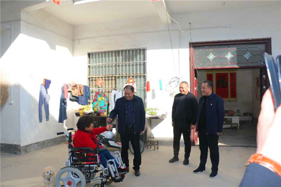 隨后,劉施恩一行前往大許寨鎮(zhèn)張樓村和風喜、葛花李村李清城、葛花李村張治業(yè)、君趙村李盼盼等貧困戶家中,每到一處都與貧困群眾親切交流,詢問身體狀況、家庭收入及住房情況。在了解到和風喜孤身一人支撐家庭,拉扯兩個孩子上學,生活十分艱難的情況后,曹長江向其捐贈了5000元現(xiàn)金,鼓勵她要對生活有信心,相信國家的扶貧政策和自然資源局的幫扶工作,早日克服暫時的困難。并向她送去祝福,祝愿她今后的日子越過越好。