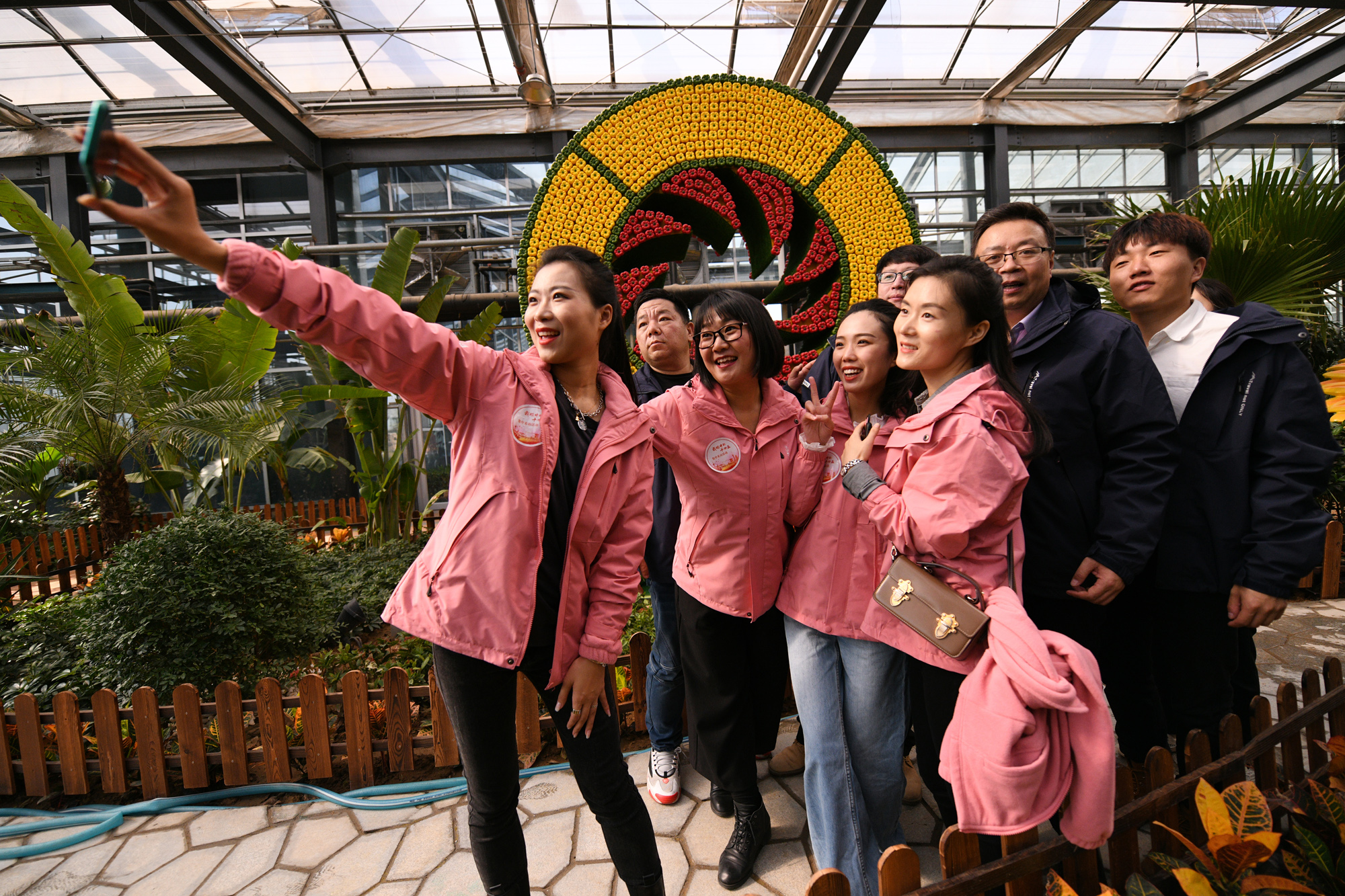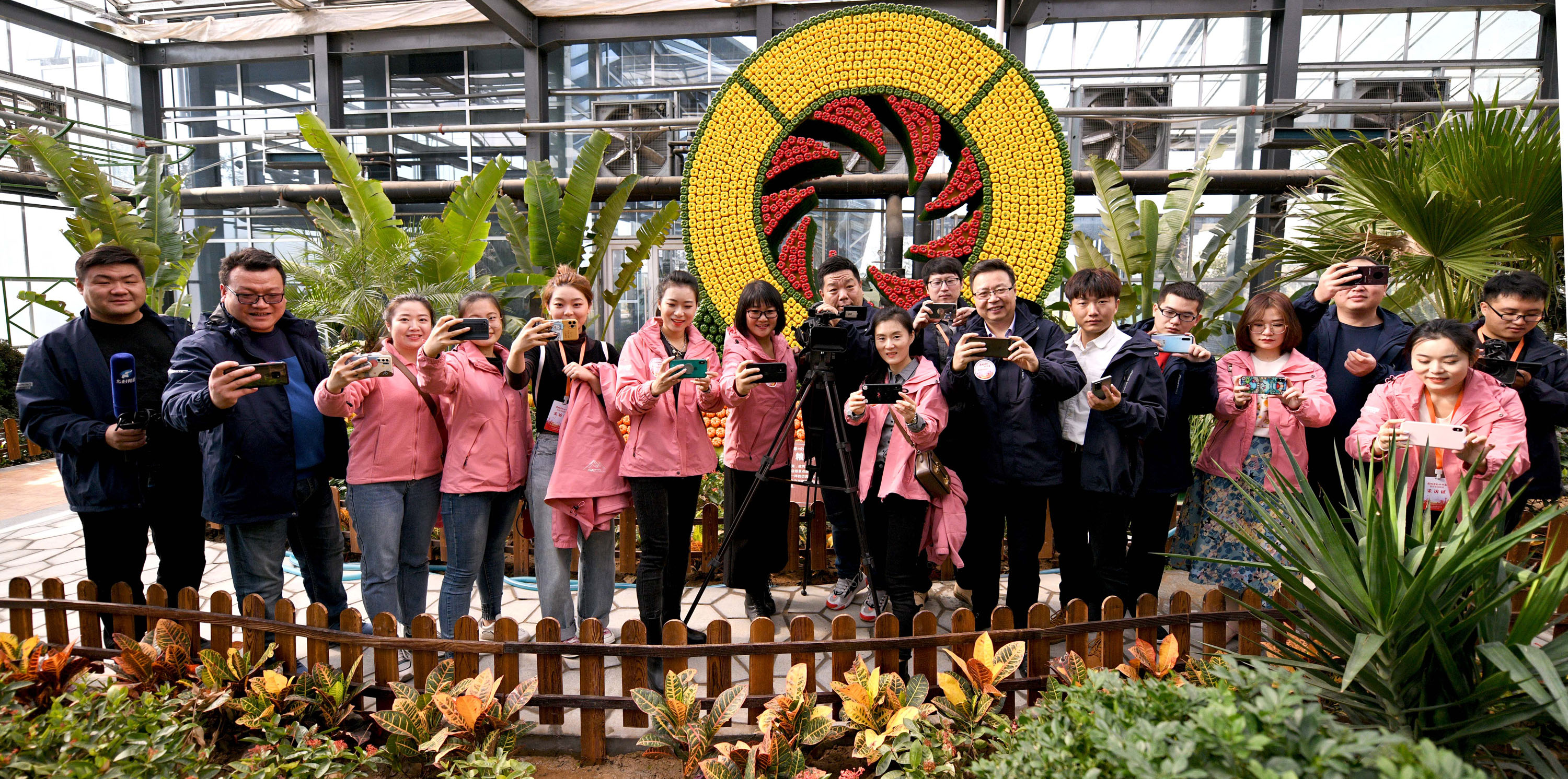 在種植蔬菜果樹(shù)的建業(yè)科技館采訪之余留個(gè)影