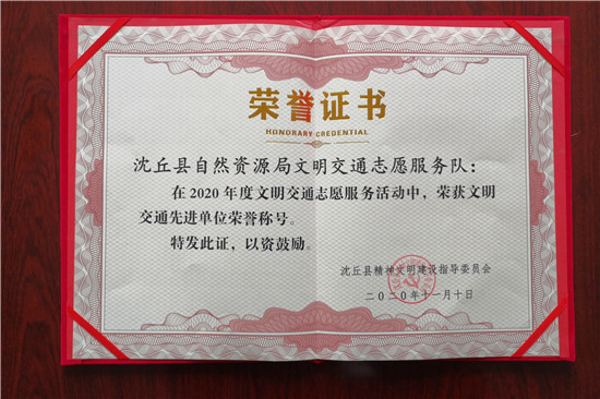 為大力弘揚(yáng)“奉獻(xiàn)、友愛、互動(dòng)、進(jìn)步”的志愿服務(wù)精神,樹立典型、激勵(lì)先進(jìn),近日,沈丘縣精神文明建設(shè)指導(dǎo)委員會(huì)對2020年度文明交通志愿服務(wù)活動(dòng)情況進(jìn)行通報(bào)表彰,全縣25家部門單位文明交通志愿服務(wù)隊(duì)、101名文明交通優(yōu)秀志愿者受表彰,沈丘縣自然資源局名列其中。