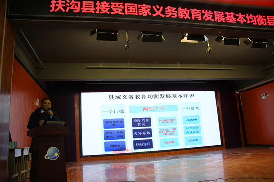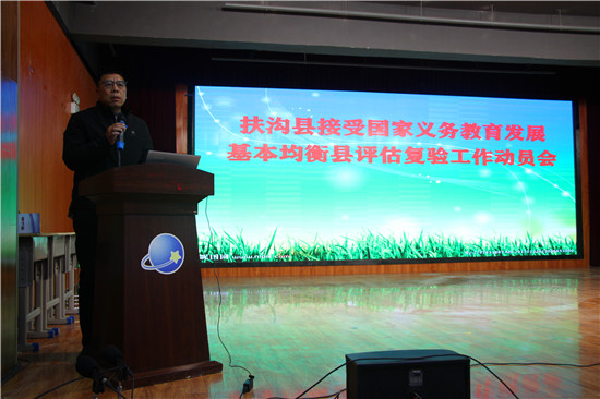 今年是河南省義務(wù)教育發(fā)展基本均衡縣評(píng)估的收官之年,扶溝縣將接受?chē)?guó)家的抽查復(fù)驗(yàn)。為進(jìn)一步做好迎接國(guó)家義務(wù)教育發(fā)展基本均衡縣評(píng)估復(fù)驗(yàn)工作,11月25日上午,扶溝縣教體局召開(kāi)了接受?chē)?guó)家義務(wù)教育發(fā)展基本均衡縣評(píng)估復(fù)驗(yàn)工作動(dòng)員會(huì)。教體局全體領(lǐng)導(dǎo)班子、股室負(fù)責(zé)人、包鄉(xiāng)人員,各鄉(xiāng)鎮(zhèn)(街道)中心校校長(zhǎng)、普教專(zhuān)干、初中校長(zhǎng)及迎驗(yàn)學(xué)校校長(zhǎng)300余人參加會(huì)議。