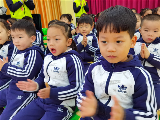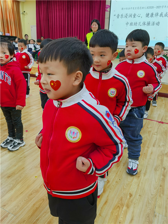 在熱情洋溢的音樂中,中班的運(yùn)動(dòng)健兒們,雄赳赳氣昂昂地入場了。瞧!他們個(gè)個(gè)精神抖擻,活力四射,整齊的步伐,響亮的口號,無不體現(xiàn)蓮幼兒童的活潑、自信?!笆澜缯婷篮谩钡捏w操音樂響起,幼兒快樂地舞動(dòng)身體,時(shí)而裝作勇敢的海鷗,時(shí)而扮作講衛(wèi)生的小花貓,時(shí)而又成了互幫互助的企鵝?;铎`活現(xiàn)的動(dòng)物模仿操,迎來現(xiàn)場觀眾的熱烈掌聲。隨著一聲響亮的“嘿、哈”,幼兒扎馬步、出拳,一氣呵成。小小的身體,展現(xiàn)大大的能量。掌握中國功夫,鍛煉強(qiáng)健體魄,我們都是功夫?qū)殞?!瞧!大班幼兒在?dòng)感的音樂和老師的指揮中精神抖擻、踏著整齊的步伐入場了,他們靈活、有序地變換著各種隊(duì)形,像一個(gè)個(gè)快樂的小精靈。在歡快的音樂中,幼兒都十分投入,和著音樂的節(jié)奏,動(dòng)作協(xié)調(diào)、整齊有力,時(shí)而還發(fā)出“哼哈”的口令聲呢!他們開心地跳著、笑著,跳出了快樂、跳出了自信、跳出了他們對運(yùn)動(dòng)的喜愛,對健康的追求。