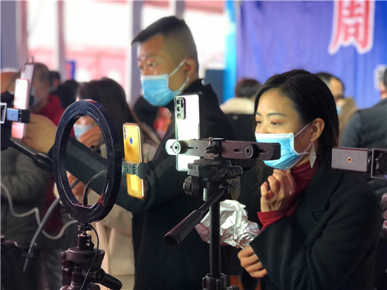 28日早上7時(shí)許,周口網(wǎng)紅俱樂(lè)部的網(wǎng)紅們和工作人員就開(kāi)始為今天的直播做準(zhǔn)備,早早把直播設(shè)備搬到現(xiàn)場(chǎng),進(jìn)行調(diào)試。10時(shí)左右,周商產(chǎn)品展示展覽活動(dòng)現(xiàn)場(chǎng)人頭攢動(dòng),熱鬧非凡,來(lái)自周口本地的9位網(wǎng)紅們陸續(xù)架好手機(jī)直播設(shè)備,打開(kāi)補(bǔ)光燈,開(kāi)始直播。現(xiàn)場(chǎng)的9位網(wǎng)紅各有特色,有打扮時(shí)髦的美女主播,有歌聲出眾的中年大叔,年齡最大的網(wǎng)紅是今年65歲的鹿邑大爺。網(wǎng)紅們一手拿著周口的蜂蜜、空心掛面、麻花、粉條、醬豆等土特產(chǎn),一邊對(duì)著手機(jī)屏幕里的粉絲熱情地展示和介紹起來(lái),有的還直接進(jìn)行現(xiàn)場(chǎng)吃播,不時(shí)與網(wǎng)友進(jìn)行唱歌、聊天互動(dòng),吸引了不少行人前來(lái)觀看。“原來(lái)在抖音上看過(guò)網(wǎng)紅帶貨,但沒(méi)見(jiàn)過(guò)真人, 今天終于見(jiàn)到真實(shí)的網(wǎng)紅了!感覺(jué)很有意思!”前來(lái)觀展的市民劉女士說(shuō)。