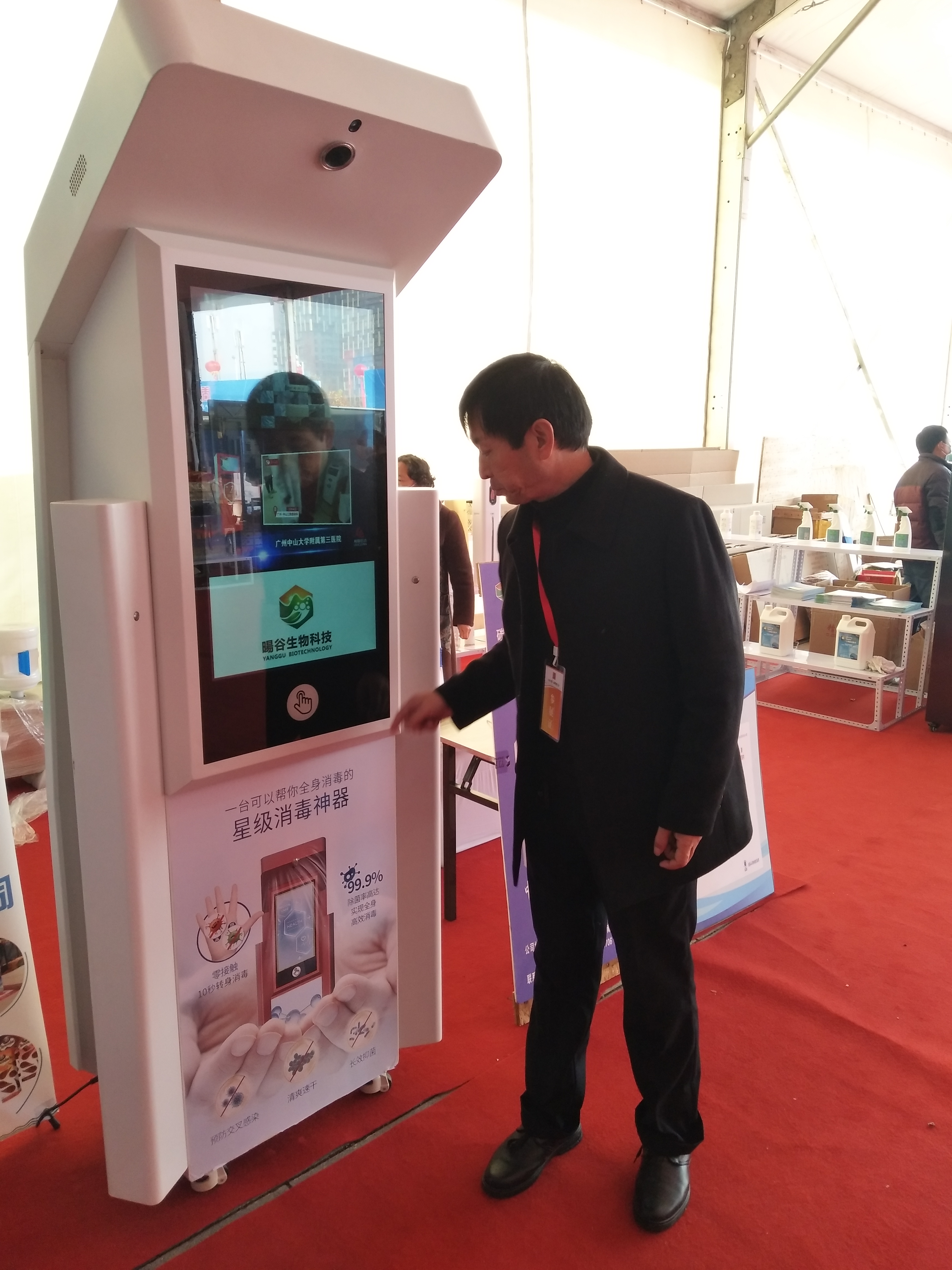 手掌往感控區(qū)上輕輕一罩,液晶屏四角就噴出霧化消毒液,大概持續(xù)10秒,足夠人轉一圈做周身消毒——在周商產(chǎn)品展示展覽大廳的西南角,北京陽谷生物科技有限公司市場部總監(jiān) 、項城人張清峰在介紹“人體感應消毒機”,引得市民紛紛圍觀體驗。由于消毒液沒有異味,部分市民質(zhì)疑是清水,對此張清峰說:“我們用的是‘竹芳牌’碳酸型微酸性次氯酸消毒液,我們的消毒機主要是面向校園推廣的,給孩子用的東西除了要有效,還得保證安全溫和,碳酸型的消毒液就沒有這么大的刺激性。”據(jù)張清峰介紹,“人體感應消毒機”是今年五月下旬生產(chǎn)的新品,目前處在推廣階段,“當?shù)弥芸谝k第一屆周商大會的消息,我第一時間想到要把消毒機展示給家鄉(xiāng)父老。我是個在北京打拼十多年的項城人,目前河南分公司由我負責,項城市政府給了我很多支持?!?/p>