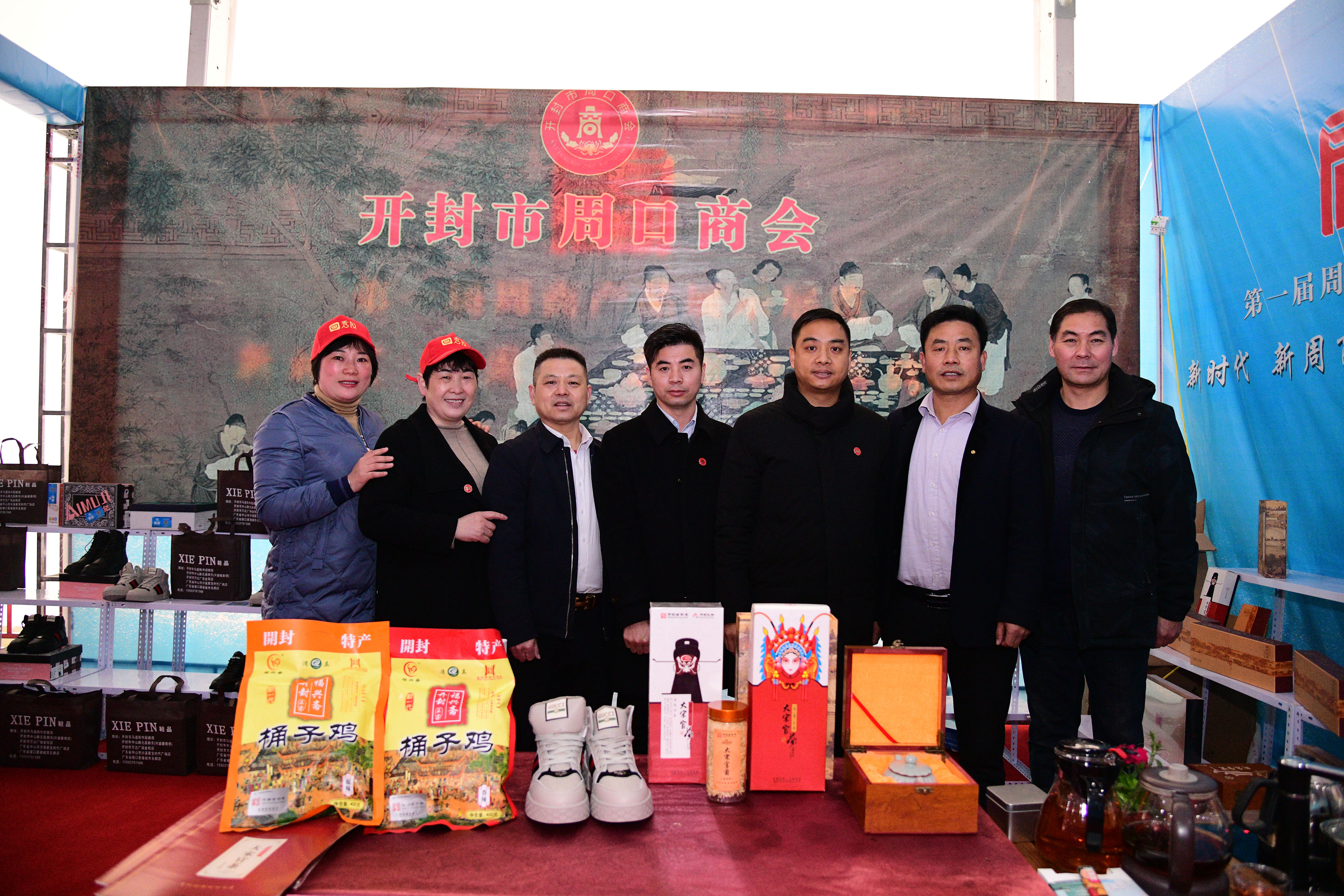 11月29日,在首屆周商大會上,在第126展位上,開封市周口商會派出六位代表齊聚這里,帶著深耕開封城多少年的成果,意氣風(fēng)發(fā)地向家鄉(xiāng)展示他們的風(fēng)采。他們分別是“大宋官茶”老總牛華麗,“大宋官瓷”老總董俊 ,福興齋桶子雞老總馬勇 ,全屋家具定制工廠“葉林森品牌”的兩位老總之一的岳偉,“鞋品”鞋老總侯建峰,電商服務(wù)平臺“秀商時代”老總王俊華。他們代表開封市周口商會的194家企業(yè)代表,和家鄉(xiāng)人見面,平時他們身在開封,深耕商界,乘風(fēng)破浪,促進(jìn)了當(dāng)?shù)亟?jīng)濟(jì)繁榮,也為周口帶來財富。
