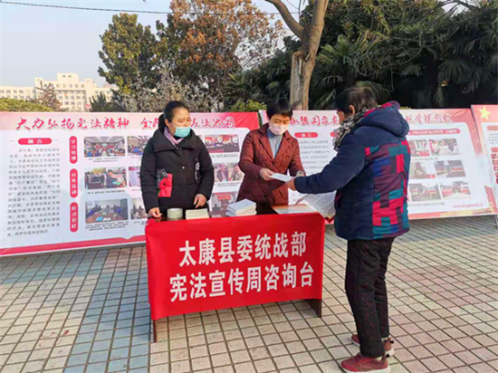 太康縣委統(tǒng)戰(zhàn)部制訂了《2020年全縣“憲法宣傳周”工作方案》,在縣人民廣場擺放展板,并設(shè)置咨詢臺,為市民發(fā)放河南省宗教條例手冊、宗教政策宣傳頁、宗教事務(wù)條例各300份。