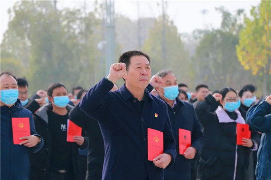 12月3日,莊嚴的宣誓聲,回響在市城鄉(xiāng)一體化示范區(qū)招商大廈院內。示范區(qū)全體干部職工手持憲法,高舉右手,在國旗下向憲法莊嚴宣誓。區(qū)黨工委書記閆立超及全體班子成員出席宣誓活動,示范區(qū)全體干部職工參加宣誓活動。