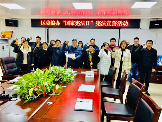 “我宣誓:忠于中華人民共和國憲法,維護憲法權(quán)威,履行法定職責,忠于祖國、忠于人民,恪盡職守、廉潔奉公,接受人民監(jiān)督,為建設(shè)富強、民主、文明、和諧、美麗的社會主義現(xiàn)代化強國努力奮斗!”12月4日上午,淮陽區(qū)委編辦主任張命令,帶領(lǐng)全體干部職工一起宣誓,洪亮而鏗鏘的誓言響徹宣誓現(xiàn)場。