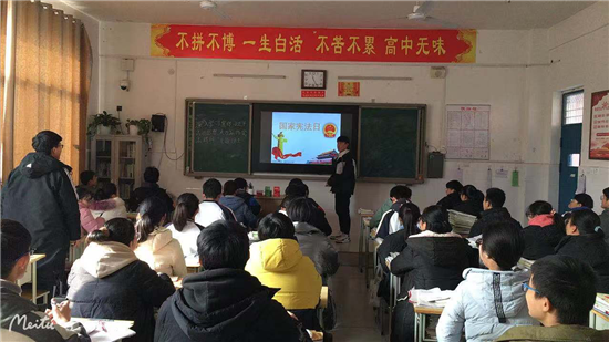 扶溝縣高中二(6)班學(xué)生楊毅說:“通過學(xué)校開展的學(xué)憲法活動,了解了很多和生活息息相關(guān)的法律知識,增強(qiáng)了法治觀念,我要做尊法、守法、護(hù)法的好少年?!?/p>