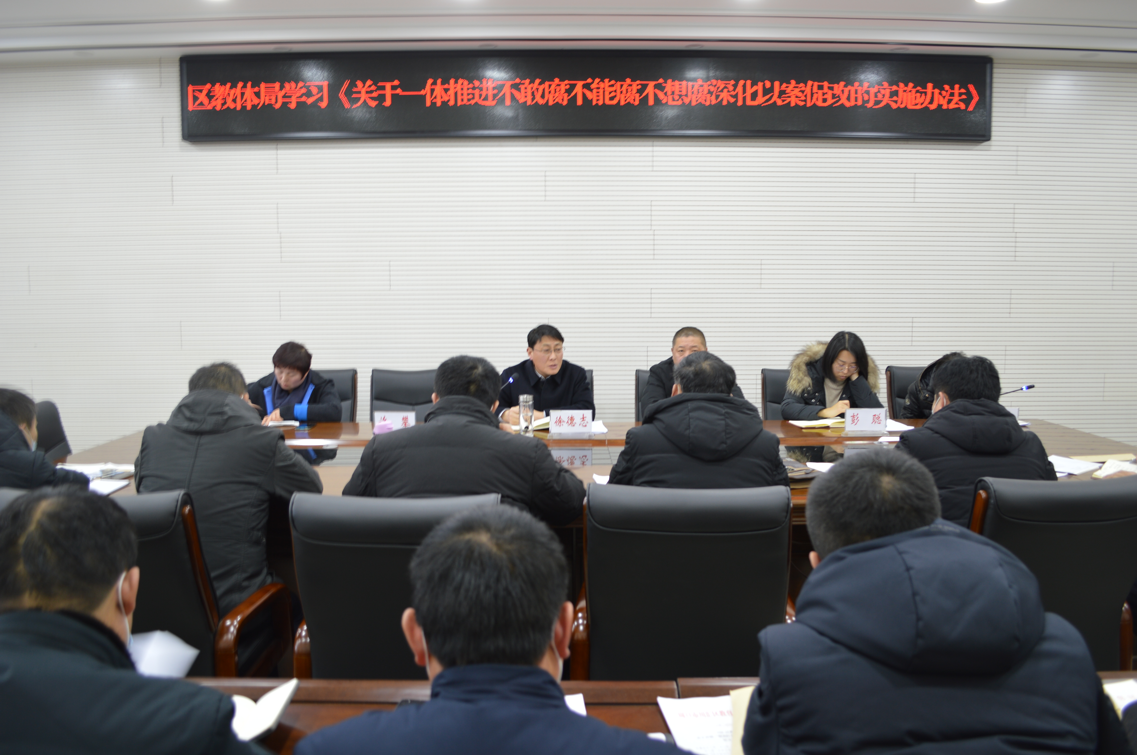 會議首先宣讀了《關(guān)于組織學(xué)習(xí)〈關(guān)于一體推進不敢腐不能腐不想腐深化以案促改的實施辦法〉的通知》,安排部署了進一步開展以案促改工作的具體要求。