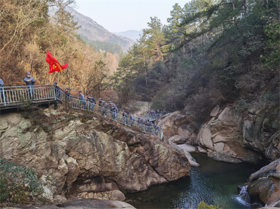 在革命烈士紀(jì)念碑前,學(xué)員們脫帽向革命烈士三鞠躬,為革命烈士敬獻(xiàn)了花籃,并舉起右拳重溫了入黨誓詞,表達(dá)對紅軍烈士的崇敬和緬懷之情。學(xué)員們還跟隨劉鄧大軍的腳印重走了“志仁小道”,重溫紅軍當(dāng)年走過的歷史足跡,體驗(yàn)了紅軍的艱苦歲月及頑強(qiáng)的革命精神和優(yōu)良的革命傳統(tǒng),真切領(lǐng)悟了大別山精神的深刻內(nèi)涵,進(jìn)一步堅定了理想信念,強(qiáng)化了黨性意識,提升了強(qiáng)黨建促發(fā)展的責(zé)任感和使命感。