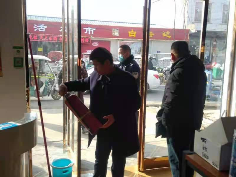 1月2日上午,豆門(mén)鄉(xiāng)黨委書(shū)記張長(zhǎng)銀帶領(lǐng)派出所、安監(jiān)站、環(huán)保辦等人員到豆門(mén)沿街商超門(mén)店、飯店、理發(fā)店、浴池、三合一場(chǎng)所、企業(yè)等重點(diǎn)場(chǎng)所,嚴(yán)查煙花爆竹、散煤燃燒,嚴(yán)查消防措施落實(shí)和消防設(shè)施配備,按照“五有五無(wú)”標(biāo)準(zhǔn),對(duì)現(xiàn)場(chǎng)發(fā)現(xiàn)的4家消防安全隱患,立即下發(fā)限期整改通知書(shū)。