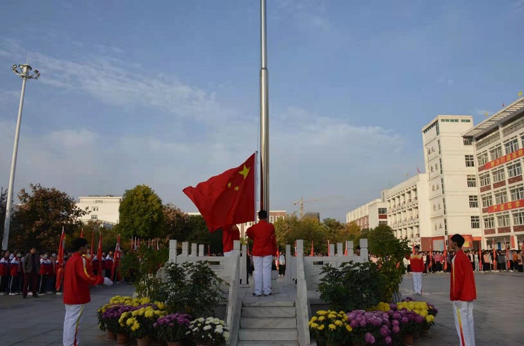 迎著朝陽(yáng),國(guó)旗護(hù)衛(wèi)隊(duì)隊(duì)員們邁著鏗鏘的步伐護(hù)衛(wèi)著國(guó)旗入場(chǎng)。激昂的《義勇軍進(jìn)行曲》響起,全體師生莊嚴(yán)肅立,向國(guó)旗行注目禮,嘹亮的歌聲簇?fù)碇鴩?guó)旗直沖云霄,在晨曦中迎風(fēng)飄揚(yáng)在二實(shí)中的上空。