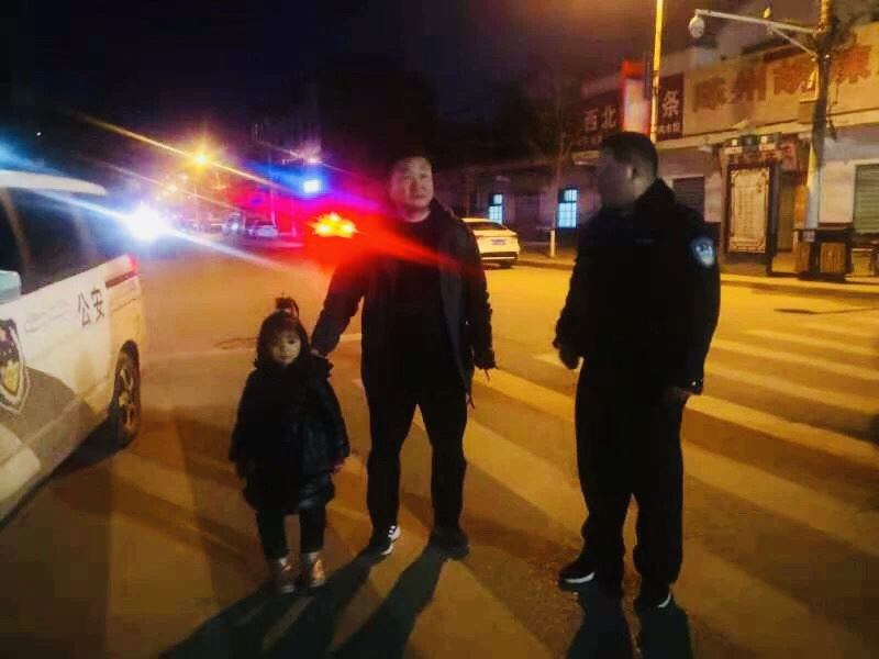 昨日20時(shí)許,鄲城公安局食藥環(huán)大隊(duì)副中隊(duì)長(zhǎng)郭海峰和協(xié)警王峰在分包路段幸福路巡邏時(shí),發(fā)現(xiàn)一名4歲左右的小女孩獨(dú)自一人橫穿馬路,沒有大人陪同,存在嚴(yán)重安全隱患。