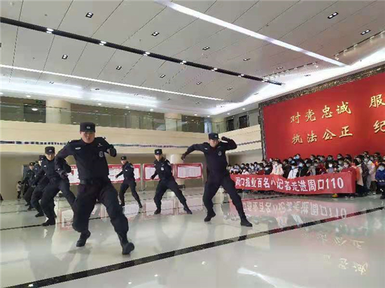 1月10日是首個(gè)“中國(guó)人民警察節(jié)”和“110”誕生35周年。小記者應(yīng)邀提前走進(jìn)市公安局參觀體驗(yàn)。9日上午,在二樓大廳,特警隊(duì)員進(jìn)行了擒敵拳表演,現(xiàn)場(chǎng)掌聲經(jīng)久不息。