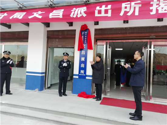 當日上午10時許,羅海龍、丁有亮共同為文昌派出所揭牌,文昌派出所全體干警、輔警面向警旗莊重宣誓。隨后,參加儀式的全體人員實地參觀了文昌派出所軟硬件設施等。丁有亮帶領文昌辦事處書記、主任現(xiàn)場了解了民警的辦公和值班情況,叮囑文昌辦事處要大力支持派出所的工作,切實為群眾解決實際問題。