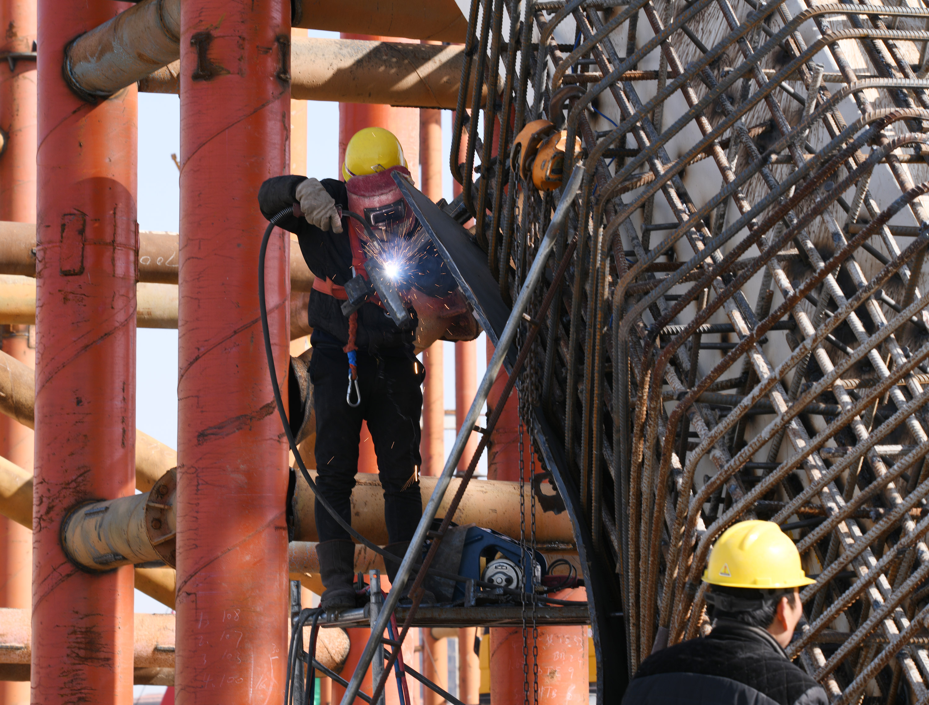 “一輪明月照古城”是中原路跨沙潁河大橋在諸多跨沙潁河大橋中獨(dú)居特色的風(fēng)情。眼下,中原路跨沙潁河大橋合攏之后,橋面建設(shè)處于緊鑼密鼓之中,并開(kāi)始進(jìn)入安裝“月亮”施工階段。記者在施工工地看到,吊車(chē)往來(lái),吊臂上下吊裝著材料,隨著工人們忙碌地焊接、安裝,“月牙”已經(jīng)乍現(xiàn)。