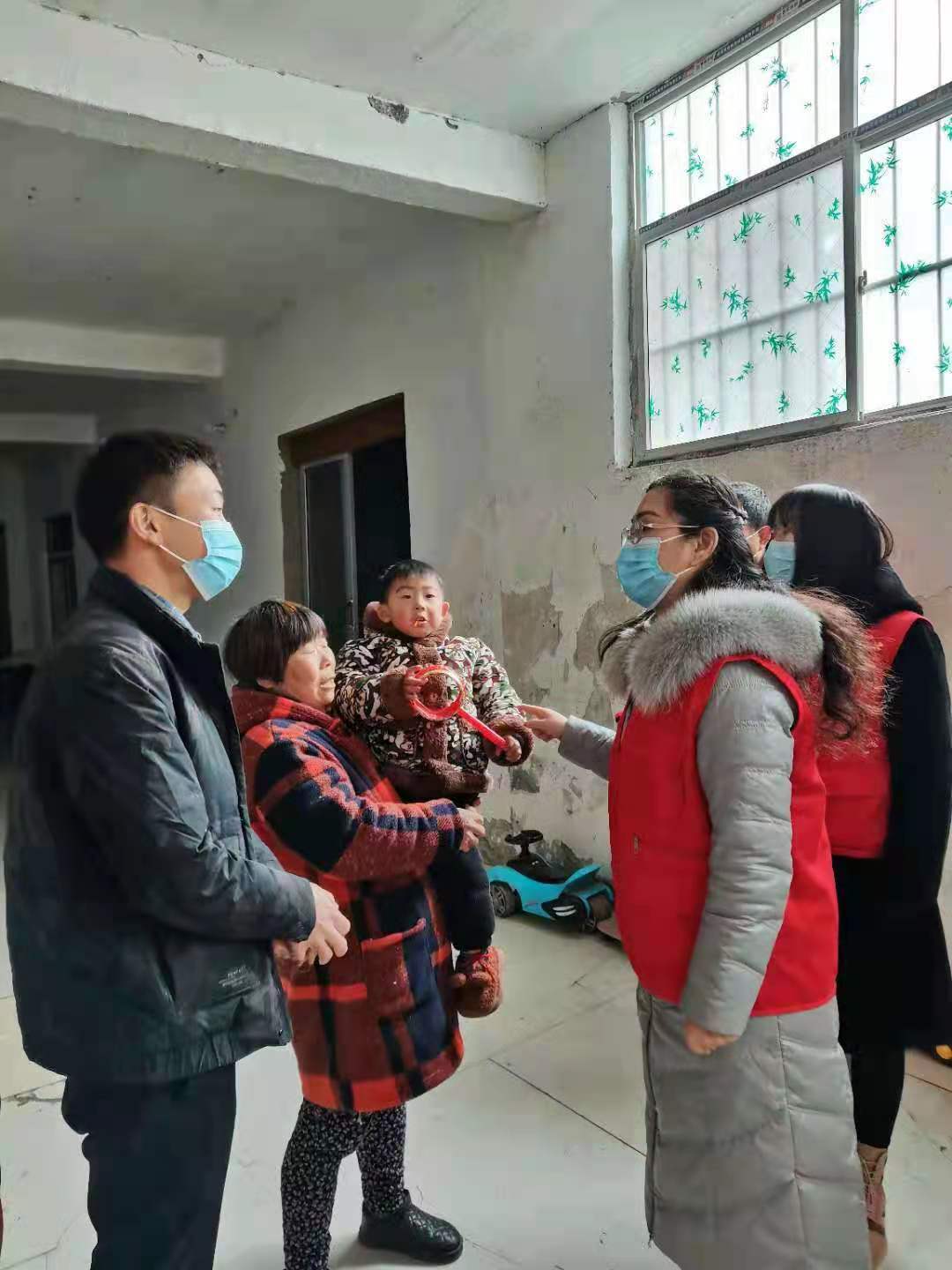 家住川匯區(qū)的劉女士,一家六口人,公公、婆婆年邁,身體不是很好,丈夫于2017年去世,三個孩子的生活學習全靠劉女士一人支撐?!袄щy是暫時的,生活會越來越好?!痹趧⑴考?,志愿者遞上慰問品,叮囑她注意身體,好好培養(yǎng)孩子。