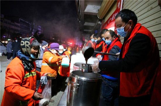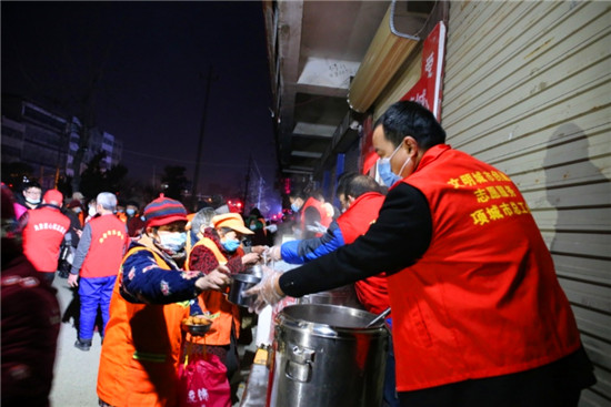 田雨表示,為了能讓大家喝上熱氣騰騰的臘八粥,志愿者凌晨四點(diǎn)便開始忙碌,把剛熬好的臘八粥裝碗并做好保溫措施運(yùn)到活動(dòng)現(xiàn)場(chǎng),再一碗碗地送到戶外勞動(dòng)者面前??粗h(huán)衛(wèi)工人、出租車司機(jī)、孤寡老人等喝著一碗碗熱騰騰的暖心臘八粥,還有他們臉上綻放的笑容,志愿者感到很欣慰,紛紛表示這一早上的冷和累都是值得的。 一碗愛心粥,溫暖了無數(shù)人,也喚醒了人與人之間的關(guān)愛、增強(qiáng)了人與人之間的信任。項(xiàng)城市總工會(huì)職工志愿者以實(shí)際行動(dòng)傳遞著溫暖、傳播著善舉、弘揚(yáng)了正能量!