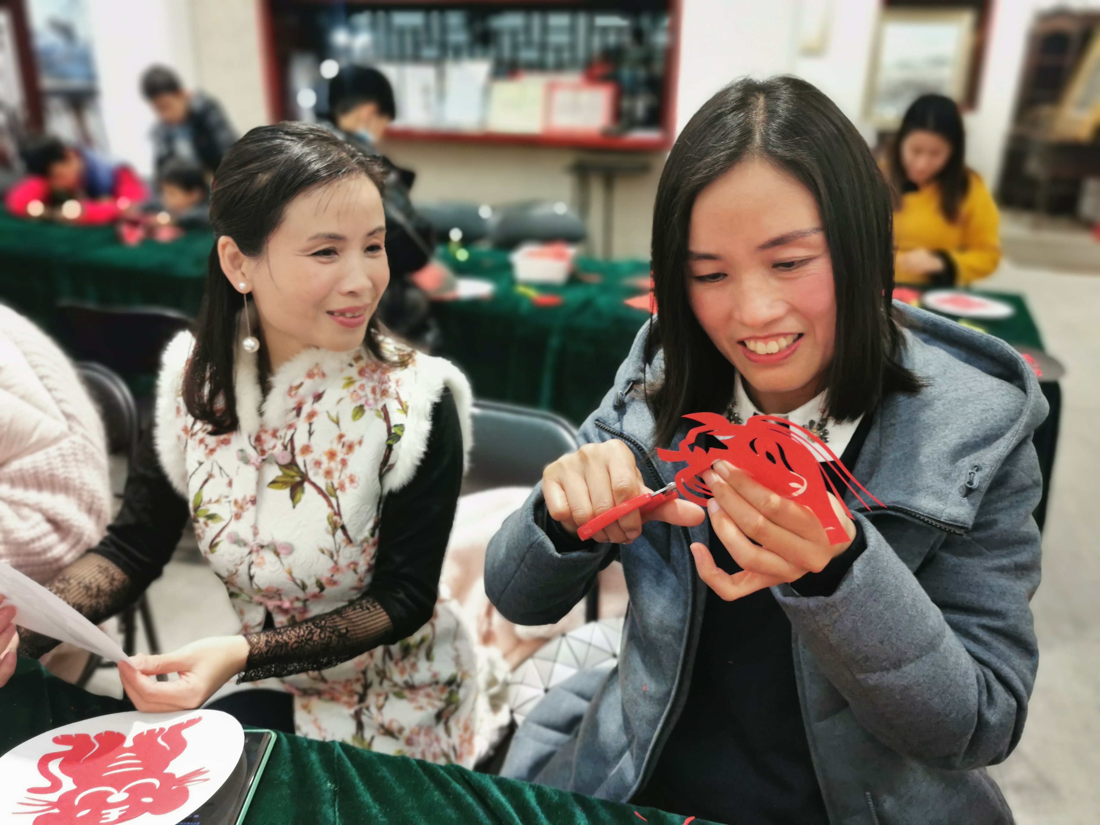 1月22日下午,工農(nóng)路華威學(xué)堂內(nèi),蕓雅讀書社的會員在學(xué)習(xí)剪紙,感受傳統(tǒng)文化帶來的快樂。