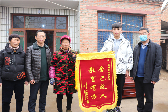 危難之際顯身手,見義勇為的義舉實為可貴。1月23日,陳州高中發(fā)出倡議,號召全校師生向勇救落水兒童的學生張廣坤學習。聞聽救落水兒童的張廣坤腳踝受傷,該校校長于當日帶隊到朱集鄉(xiāng)大張營村看望在家休養(yǎng)的張廣坤,送去學校的關(guān)懷。