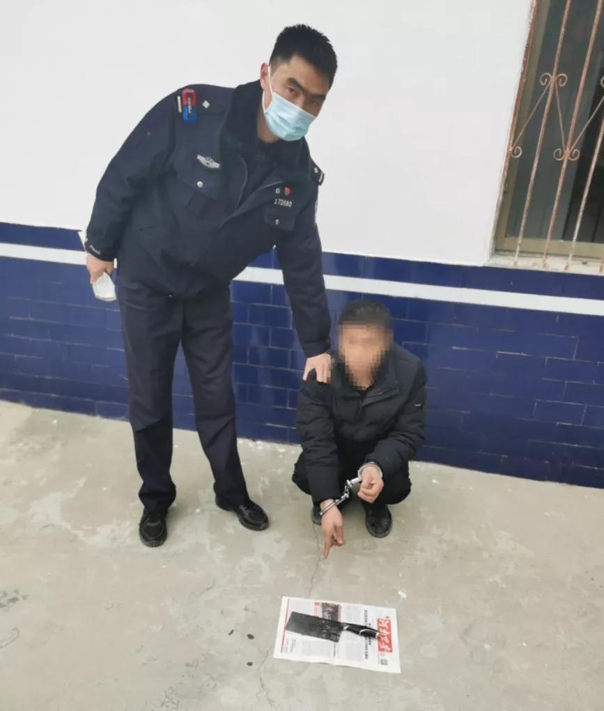 接到報(bào)警后,穆店派出所所長吳玉峰帶領(lǐng)值班人員孫兆顯、王濤、尹文、郭軍禮等人迅速趕到現(xiàn)場。正當(dāng)民警尋找李某的時(shí)候,只見一人騎著摩托車自遠(yuǎn)處趕來。細(xì)心的民警發(fā)現(xiàn)李某口袋里竟然裝著一把菜刀,隨即上前將其控制。