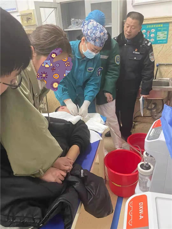 當(dāng)日21時(shí)許,在該賓館一房間,丁高嶺通過半掩的門,發(fā)現(xiàn)了輕生男子,急忙沖過去,取下了吊在其脖子上的電話線,立即通知120醫(yī)生進(jìn)行救治,并與醫(yī)生一起將其拉至項(xiàng)城市第一人民醫(yī)院進(jìn)一步治療。張某某極不配合、拒絕救治,丁高嶺苦口婆心勸說,并電話聯(lián)系到其父母,共同做其思想工作。經(jīng)過規(guī)勸,急救醫(yī)生才得以對其進(jìn)行洗胃等對癥處置,經(jīng)過近40分鐘的搶救,張某某終于脫離了生命危險(xiǎn)。