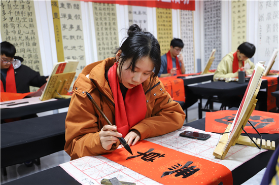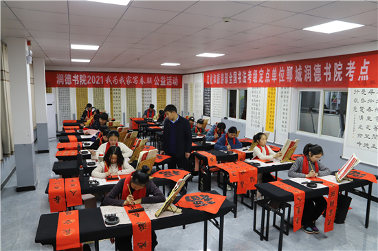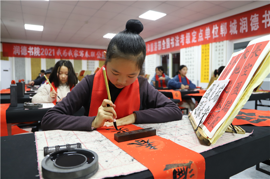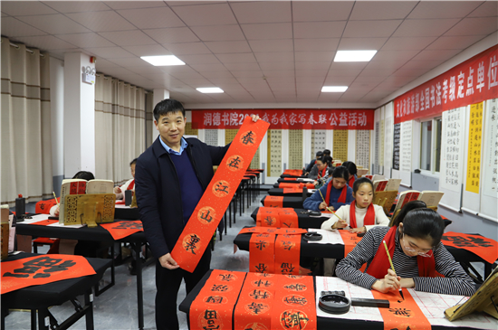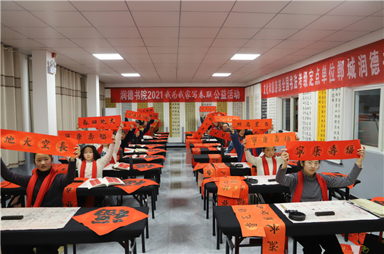 春節(jié)前夕,鄲城縣的書(shū)法家和書(shū)法愛(ài)好者們便更顯活躍,他們進(jìn)機(jī)關(guān)、進(jìn)企業(yè)、進(jìn)社區(qū)、進(jìn)學(xué)校、進(jìn)農(nóng)村,把富有中國(guó)特色的新春祝福,富含中國(guó)傳統(tǒng)文化的春聯(lián),送到千家萬(wàn)戶(hù)。