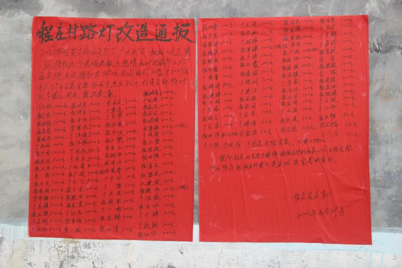 2021年2月3日,周口市商水縣郝崗鎮(zhèn)程莊村的一面墻上的紅紙黑字大字報吸引了記者的注意,上面密密麻麻地寫著愛心村民的姓名和捐款金額,經(jīng)走訪村干部得知實情。