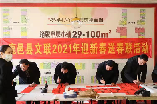 “縣文聯(lián)積極響應(yīng)各級宣傳工作的相關(guān)要求,注重?zé)嵩诨鶎?、熱在氛圍,突出春?jié)這一時間節(jié)點,以“送春聯(lián)、送祝?!敝黝}活動為載體,為社區(qū)群眾送上中國傳統(tǒng)的新年祝福?!笨h文聯(lián)副主席于連河說,縣文聯(lián)推出系列文化惠民活動,通過文化下鄉(xiāng)、志愿幫扶等系列主題活動,大力弘揚中華優(yōu)秀傳統(tǒng)文化。③5