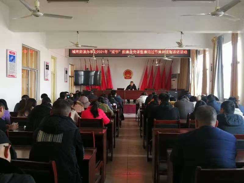 在春節(jié)、元宵節(jié)即將來(lái)臨之際,川匯區(qū)城南街道辦事處開展2021年“雙節(jié)”前廉政黨課暨廉潔過(guò)節(jié)集體談話活動(dòng),要求黨員干部增強(qiáng)廉潔自律意識(shí)、筑牢思想防線,確保過(guò)一個(gè)風(fēng)清氣正的“雙節(jié)”。