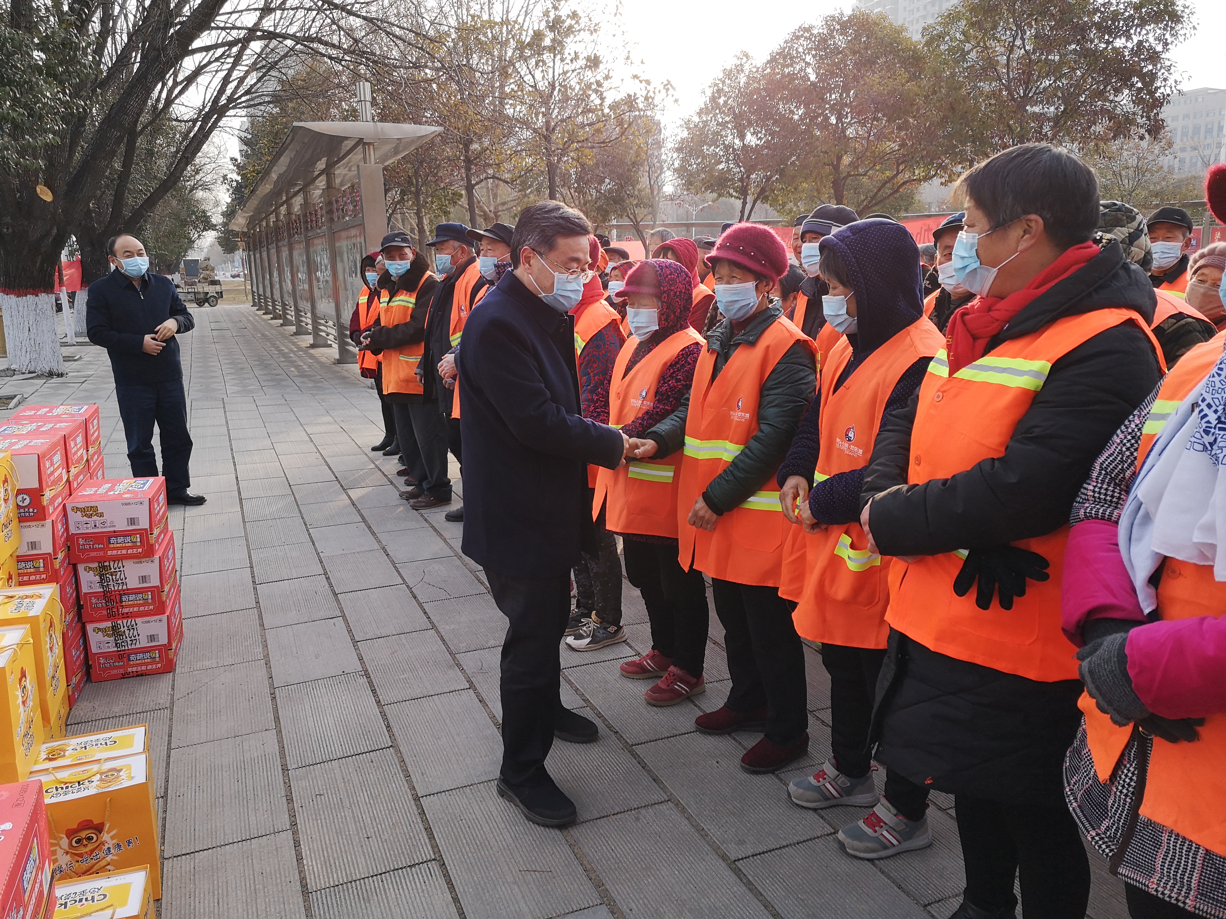 在行政新區(qū)全民健身廣場(chǎng),皇甫立新、劉國(guó)慶同環(huán)衛(wèi)工人們一一握手,并代表縣四個(gè)班子向堅(jiān)守一線的環(huán)衛(wèi)工人致以新春的祝福,對(duì)他們?cè)谶^(guò)去一年里付出的辛勤勞動(dòng)表示衷心感謝?;矢α⑿抡f(shuō),一年來(lái),環(huán)衛(wèi)工人們起早貪黑、兢兢業(yè)業(yè),為改善居民生活環(huán)境和提升城市形象付出很多心血和汗水,取得了良好效果,城區(qū)環(huán)境和城市面貌有了很大改善,得到了社會(huì)各界的一致好評(píng),希望大家繼續(xù)發(fā)揚(yáng)愛(ài)崗敬業(yè)、無(wú)私奉獻(xiàn)的精神,把縣城衛(wèi)生打掃的更加干凈、整潔,為全縣人民歡度春節(jié)創(chuàng)造一個(gè)干凈舒適愉快的環(huán)境。