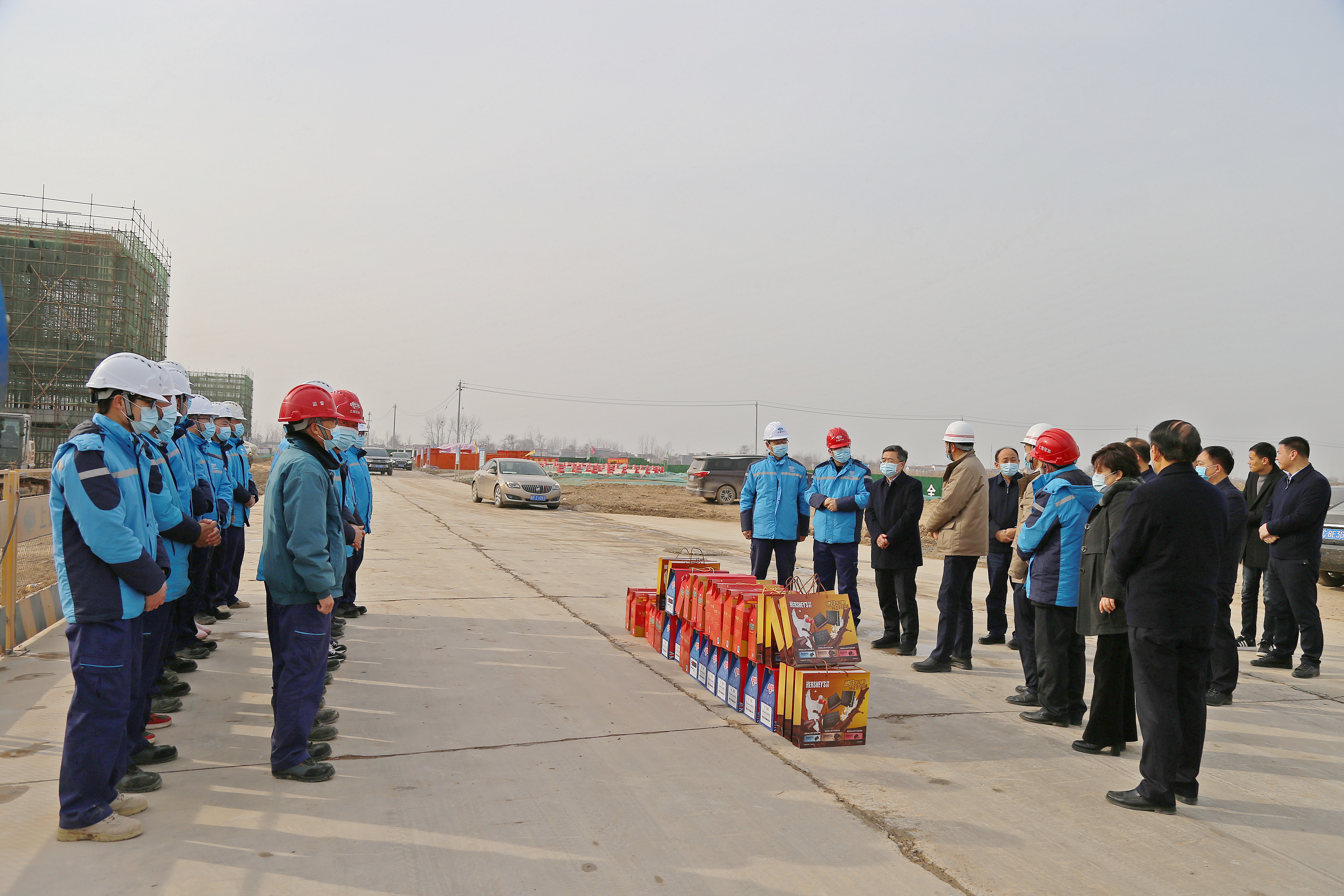 在安鋼產(chǎn)能置換項(xiàng)目部和一期一步施工現(xiàn)場(chǎng),皇甫立新、劉國(guó)慶代表縣四個(gè)班子和全縣人民向奮戰(zhàn)在安鋼產(chǎn)能置換一線的建設(shè)者們表示感謝,并致以新春的祝福?;矢α⑿抡f(shuō),安鋼產(chǎn)能置換項(xiàng)目自落戶沈丘以來(lái),項(xiàng)目推進(jìn)如此之快,可謂是日新月異,氣勢(shì)恢宏,振奮人心,這既離不開(kāi)省委省政府、市委市政府的關(guān)心支持,更離不開(kāi)建設(shè)者們的辛苦付出。希望廣大建設(shè)者能夠繼續(xù)發(fā)揚(yáng)不怕苦不怕累的敬業(yè)精神,以時(shí)不我待的決心,全面加快項(xiàng)目建設(shè),確保如期實(shí)現(xiàn)2021年5月份建成出鋼的施工目標(biāo),繼續(xù)為周口、沈丘經(jīng)濟(jì)社會(huì)高質(zhì)量發(fā)展作出新的貢獻(xiàn)。