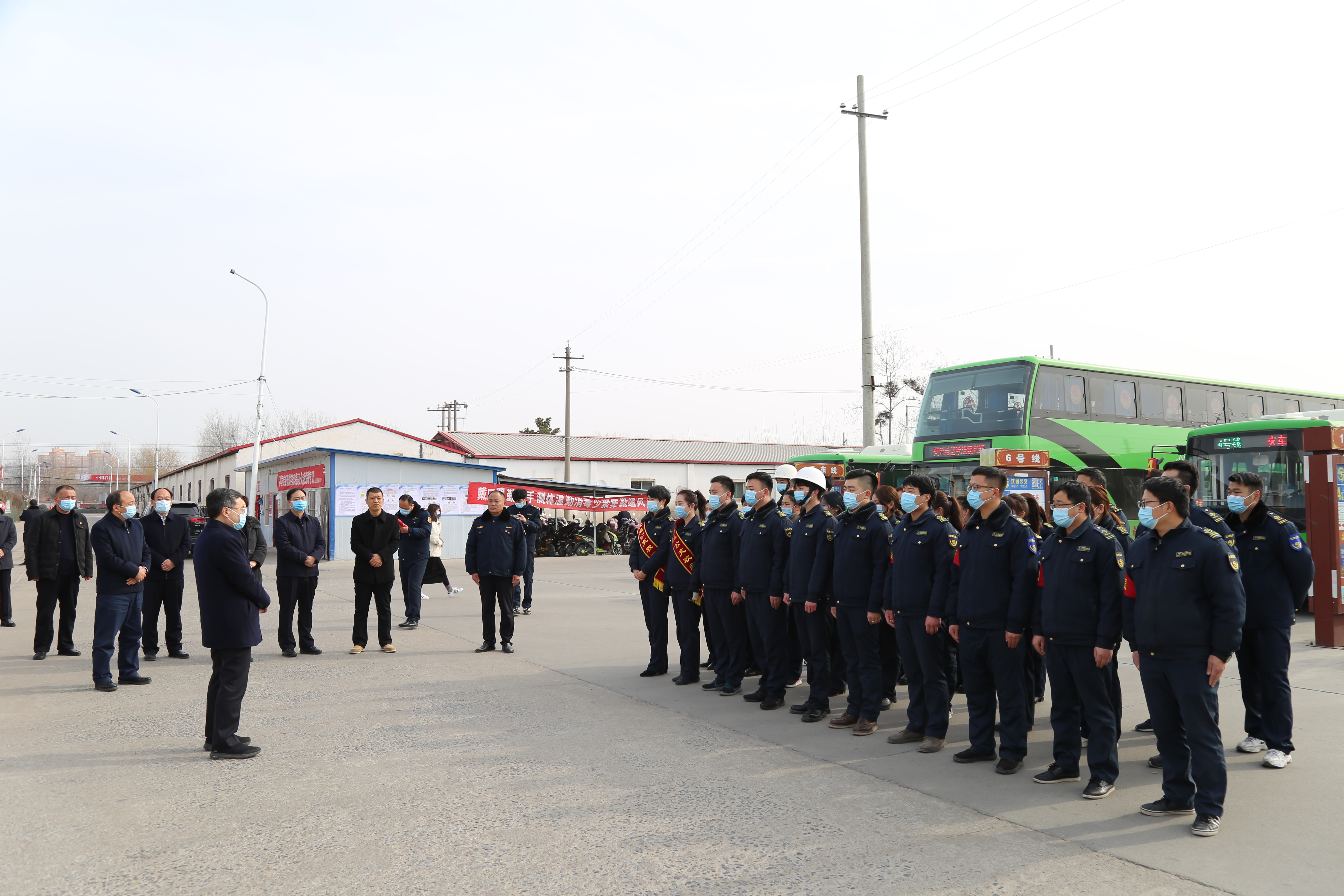在縣公交公司,皇甫立新、劉國(guó)慶代表縣四個(gè)班子向堅(jiān)守在一線的干部職工和公交司機(jī)致以節(jié)日的問(wèn)候,對(duì)他們長(zhǎng)期以來(lái)為我縣交通事業(yè)做出的貢獻(xiàn)表示感謝,并祝大家新春快樂(lè),闔家歡樂(lè)。在認(rèn)真聽(tīng)取相關(guān)負(fù)責(zé)人關(guān)于春節(jié)期間車輛運(yùn)營(yíng)和疫情防控等工作的匯報(bào)后,皇甫立新說(shuō),眼下,隨著春節(jié)臨近,人流量劇增,交通壓力和疫情防控壓力徒增,縣公交公司要繼續(xù)落實(shí)春節(jié)期間城區(qū)公交車免費(fèi)乘坐惠民政策,在嚴(yán)格落實(shí)疫情防控措施的基礎(chǔ)上,根據(jù)春節(jié)期間人流特點(diǎn),靈活調(diào)度車輛,合理安排各公交路線的車輛、臺(tái)數(shù)、營(yíng)運(yùn)車次,統(tǒng)籌做好高鐵站、火車站、汽車站等運(yùn)輸點(diǎn)的接續(xù)接駁工作,優(yōu)化營(yíng)運(yùn)時(shí)間和發(fā)車頻次,尤其是高鐵夜班車的統(tǒng)籌安排,確保乘客安全到家,不滯留一位乘客。同時(shí)希望堅(jiān)守崗位的公交職工要繼續(xù)提供優(yōu)質(zhì)服務(wù),文明安全駕駛,為全縣人民安全出行提供方便、搞好服務(wù)?;矢α⑿逻€叮囑公交公司負(fù)責(zé)人要合理安排好職工的工作和生活,為廣大一線工作人員安心工作提供堅(jiān)實(shí)的后勤保障,讓他們更加舒心愉快地服務(wù)廣大群眾。