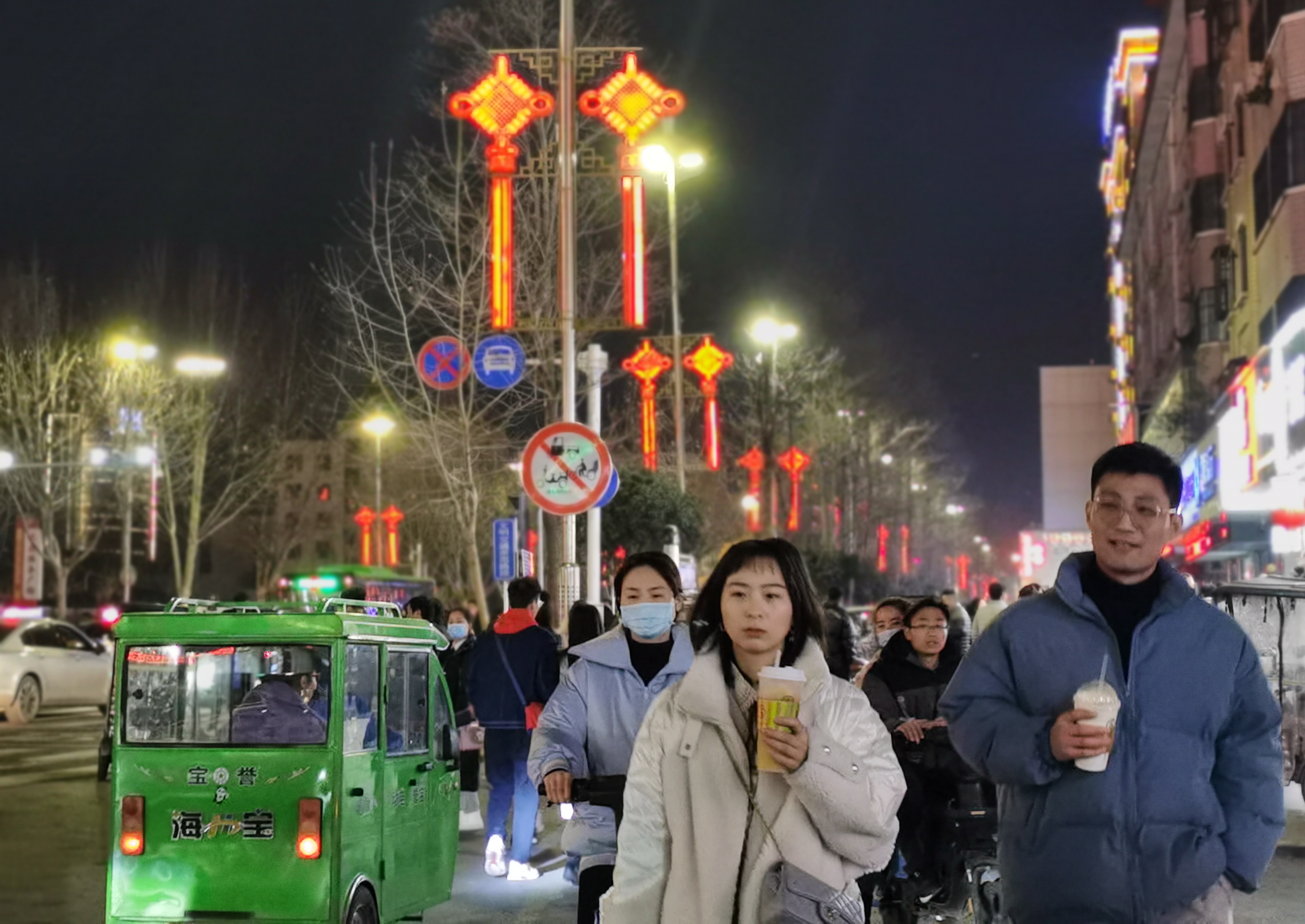 2021年春節(jié)將至,為給大家營造愉悅、喜慶、歡樂的節(jié)日氛圍,中心城區(qū)七一路掛上了中國結(jié)造型的彩燈,兩邊的商店也在門口掛起了各種紅燈籠。夜幕降臨后,紅彤彤的燈籠亮起來,街道變得絢麗多彩,把市區(qū)裝點(diǎn)得年味十足。②7