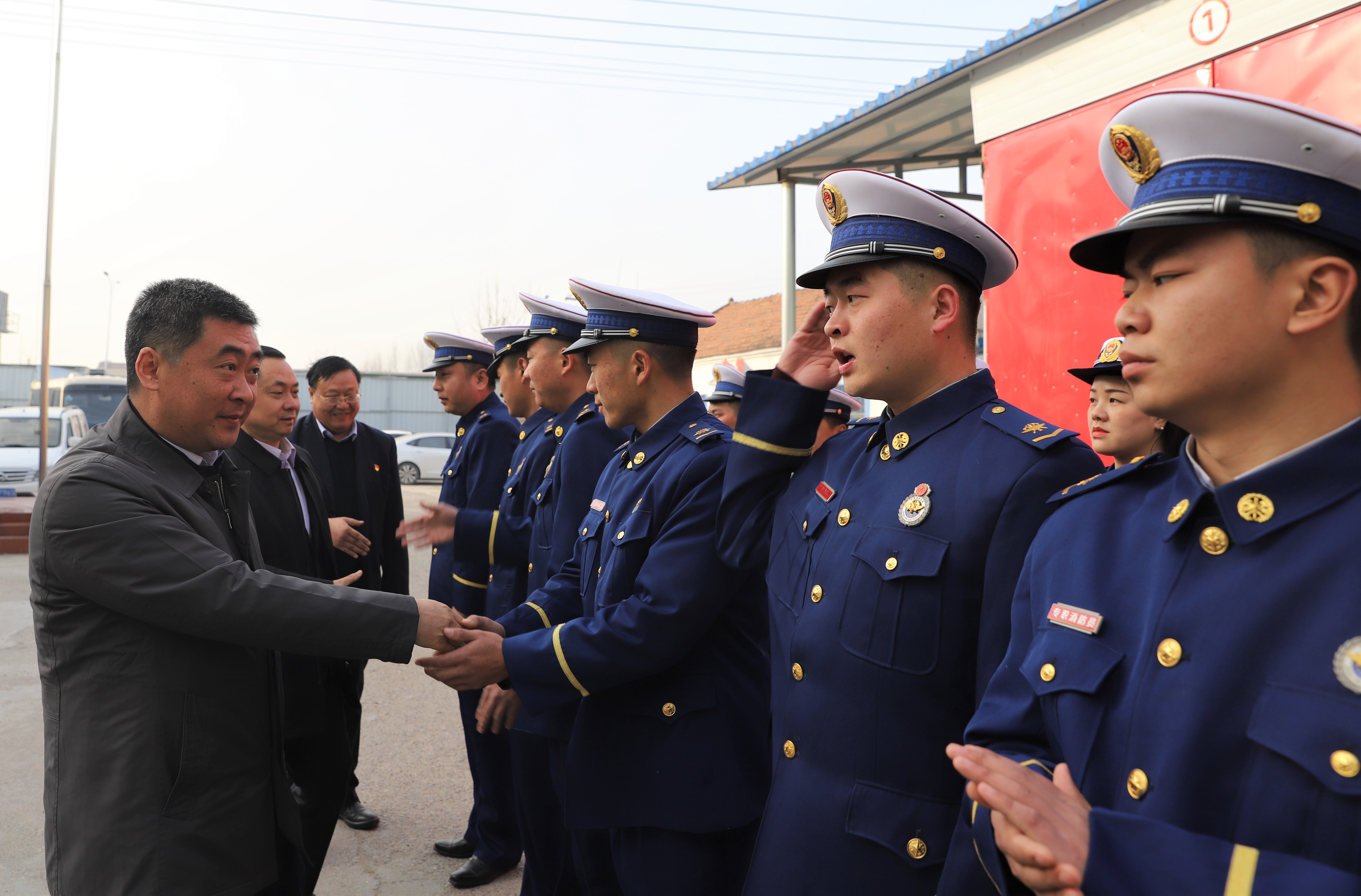 隨后,孫鵬、程若光將節(jié)日祝福和慰問金送到消防工作室,并再次囑托消防官兵要做好春節(jié)期間轄區(qū)消防安全工作。港區(qū)黨委委員杜廣賢說,過去一年來,港區(qū)消防官兵始終以強烈的政治責(zé)任感和憂患意識,主動承擔(dān)急難險重任務(wù),在防火滅火第一線不辱使命扎實工作,無私奉獻為港區(qū)臨港經(jīng)濟發(fā)展、政治穩(wěn)定作出了積極貢獻,受到全區(qū)干部群眾的一致好評,得到了上級主管部門的充分肯定。港區(qū)黨委、管委會對過去一年來的消防工作十分滿意,杜廣賢代表港區(qū)黨委、管委會向全體消防官兵致以崇高的敬意。他指出,2021年將是港區(qū)大發(fā)展、大跨越的一年,希望消防官兵在今后的工作中繼續(xù)發(fā)揚不畏艱險、無私奉獻的好作風(fēng),為臨港經(jīng)濟發(fā)展作出新的貢獻。