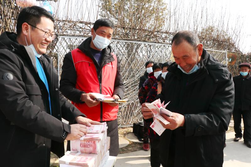 宋傳東、宋建超、王龍、魏端明、張鳳云......村民們領(lǐng)過錢,歡笑著離開現(xiàn)場(chǎng)。當(dāng)日,合作社向村民們發(fā)放了150萬元的租金、工資和分紅。涉及城郊鄉(xiāng)池莊行政村的宋莊、毛莊、王菜園和大于行政村的常莊、楊莊等9個(gè)自然村,共計(jì)400戶村民。