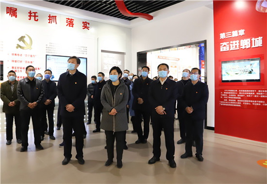 2月18日,新年上班第一天,市人大常委會副主任、鄲城縣委書記羅文閣,縣委副書記、縣長李全林帶領(lǐng)縣四個(gè)班子領(lǐng)導(dǎo)和部分縣直單位黨員干部,開展中共黨史學(xué)習(xí)教育活動(dòng),激勵(lì)全縣各級黨員干部不忘初心、牢記使命,在新時(shí)代不斷加強(qiáng)黨的建設(shè),更加緊密地團(tuán)結(jié)在以習(xí)近平同志為核心的黨中央周圍,始終保持永不懈怠的精神狀態(tài)和一往無前的奮斗姿態(tài),振奮精神,堅(jiān)定信心,銳意進(jìn)取,真抓實(shí)干,奮力譜寫全面建設(shè)社會主義現(xiàn)代化鄲城新篇章,以優(yōu)異成績迎接建黨100周年。