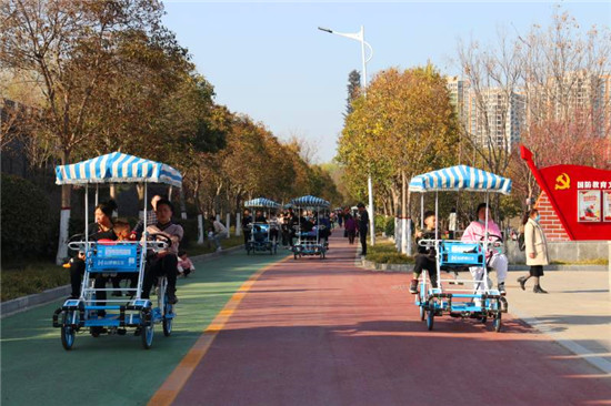 “今天真暖和?!?月19日,風和日麗,周口國防教育園內湖水蕩漾,四周的迎春花、梅花相繼開放,吸引了許多市民帶著孩子前往踏春賞花,接受國防教育。周口日報·周道客戶端記者 高洪馳 攝