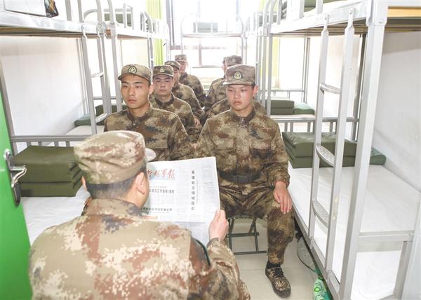 今年上半年的預定新兵役前訓練,正值衛(wèi)國戍邊英雄官兵的先進事跡被新聞媒體宣傳。沈丘縣人武部抓住這一向“衛(wèi)國戍邊英雄”學習的好時機,組織應(yīng)征青年觀看前線“斗爭”視頻、緬懷英雄事跡、專題宣講教育、討論發(fā)言、簽名、向英雄致敬等,對應(yīng)征青年集中進行教育。