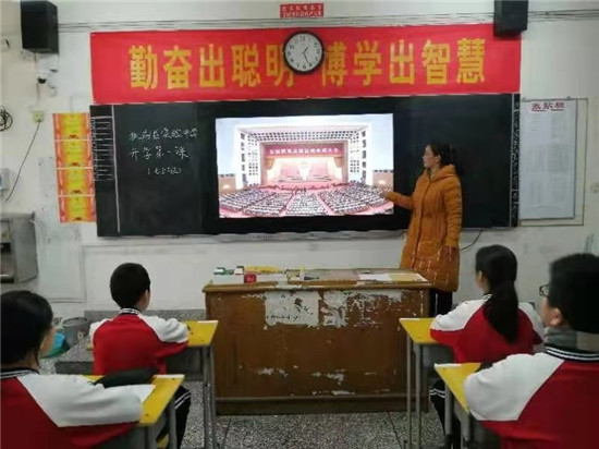 “在浙江省嘉興市有一處美麗的風(fēng)景——南湖,不僅以秀麗的煙雨風(fēng)光享有盛名,而且還因中國(guó)共產(chǎn)黨第一次全國(guó)代表大會(huì)在這里勝利閉幕而備受世人矚目……”3月1日上午8時(shí)30分,記者在扶溝縣回族小學(xué)看到,學(xué)校全體師生正在同一時(shí)間觀看“開(kāi)學(xué)第一課”。