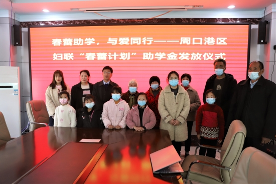 在發(fā)放儀式上,周口港區(qū)婦聯(lián)向轄區(qū)6名家庭困難、品學(xué)兼優(yōu)的中小學(xué)女生發(fā)放“春蕾計(jì)劃”助學(xué)金共5000元,助力她們圓夢成才。