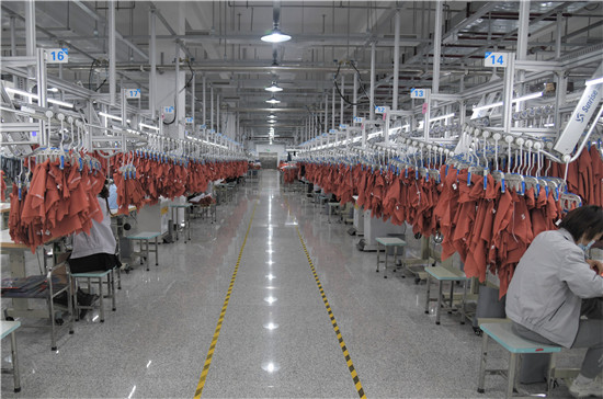 3月8日上午,位于商水縣產(chǎn)業(yè)集聚區(qū)內(nèi)的河南阿爾本制衣有限公司數(shù)千名女工在縫制訂單衣服。