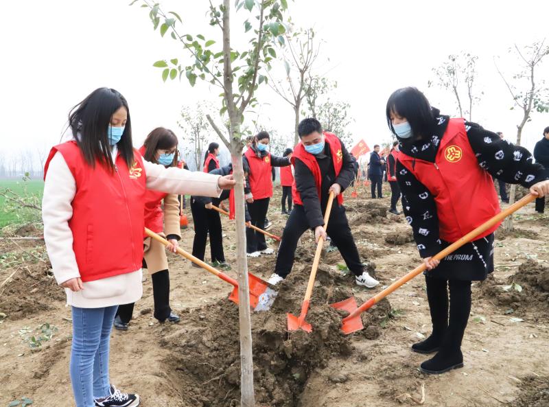 草長鶯飛,春回大地。3月12日,在第43個植樹節(jié)之際,全市掀起義務(wù)植樹熱潮,黨員干部、志愿者、市民踴躍參與義務(wù)植樹活動。扶正樹苗、揮鍬培土、分層踩實(shí)、堆起圍堰、提水澆灌,認(rèn)真地完成著每一道工序,栽下了一棵棵樹苗,為改善生態(tài)環(huán)境、綠化美麗家園種下了一棵棵綠色的希望。圖為鄲城縣義務(wù)植樹現(xiàn)場。
