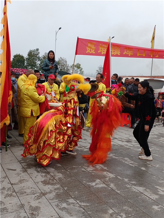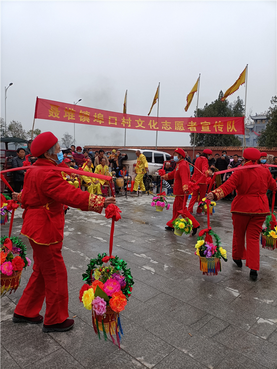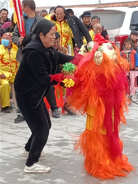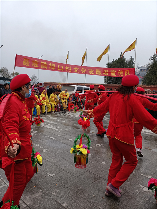 二月二,龍?zhí)ь^。3月14日,西華縣女媧城門前的廣場(chǎng)上,寫著“聶堆鎮(zhèn)埠口村文化志愿者宣傳隊(duì)”的紅色條幅前吸引了眾多游人。這些志愿者們用群眾喜聞樂見的舞獅、戲曲等傳統(tǒng)文藝節(jié)目,自編自演脫貧攻堅(jiān)給村民們帶來的新變化,宣傳黨的富民政策,鼓勵(lì)大家參與到鄉(xiāng)村振興工作中。