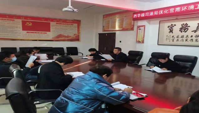 11月25日,西華縣司法局召開(kāi)優(yōu)化營(yíng)商環(huán)境工作推進(jìn)會(huì)。該局局長(zhǎng)張素貞作重要講話(huà),該局黨組成員、政治部主任徐啟飛主持會(huì)議,各相關(guān)股室負(fù)責(zé)人參加會(huì)議。