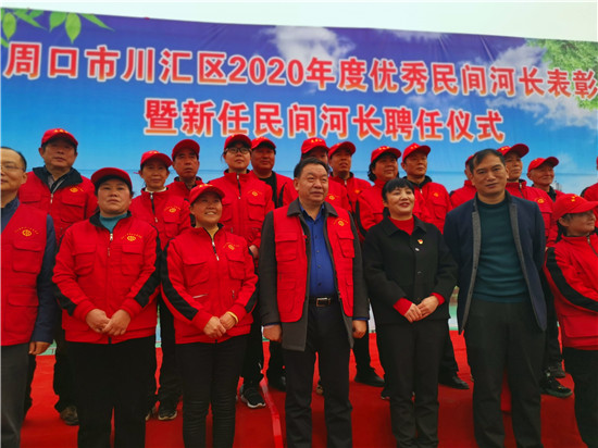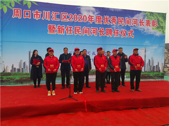 會場設在中州路橋北頭向東100米的沙潁河北岸。區(qū)河長辦主任李海濤宣讀《川匯區(qū)河長制辦公室關于表彰2020年優(yōu)秀“民間河長”的決定》《周口市川匯區(qū)河長制辦公室關于聘任“民間河長”的通知》。與會領導共同為10名受表彰的優(yōu)秀“民間河長”頒發(fā)榮譽證書,為20名新任“民間河長”頒發(fā)聘任證書。