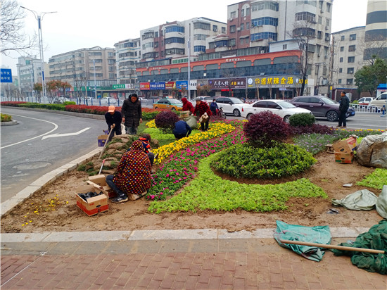 一場春雨過后,處處洋溢著勃勃生機(jī)。3月20日上午,記者在周口中心城區(qū)大慶路與交通大道交叉口處的紅綠燈旁看到,園藝工作人員正在忙碌著補(bǔ)種花木,黃色、綠色、紅色的花兒平鋪在一起組合成一道亮麗的風(fēng)景,扮靚了街頭,令人賞心悅目。③2